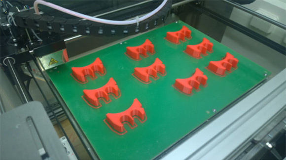 Kalmar Technology and Competence Centre in Tampere, Finland is using 3D printing for fast prototyping to save time in the design phase, in the verification of functionality and compatibility of shapes, as well as for design visualisation. Image shows 3D printed hose fasteners for hydraulic cylinder.